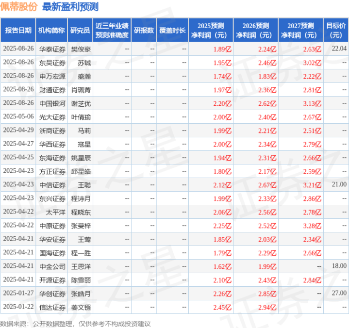 最新盈利预测明细如下: